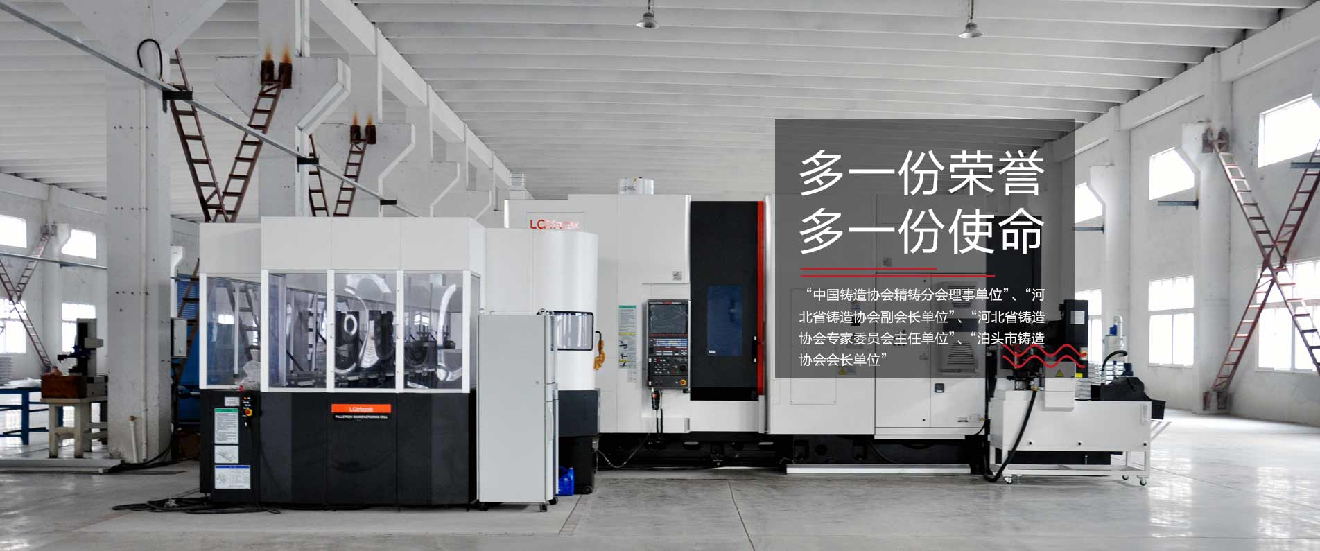 泊頭市宏昌機械有限責任公司,坐落在中國鑄造名城-----河北省泊頭市。公司集鑄造和機加工于一體,是國內大型鑄造規(guī)模化專業(yè)生產(chǎn)基地。是“中國鑄造協(xié)會精鑄分會理事單位”、“河北省鑄造協(xié)會副會長單位”、“河北省鑄造協(xié)會專家委員會主任單位”、“泊頭市鑄造協(xié)會會長單位”。